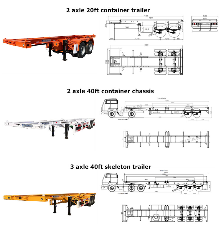 Container chassis trailer is essentially a flatbed trailer with a reinforced frame that can support the weight and size of a standard shipping container. Container trailers are typically either 20 feet or 40 feet in length, which corresponds to the standard sizes of shipping containers.
